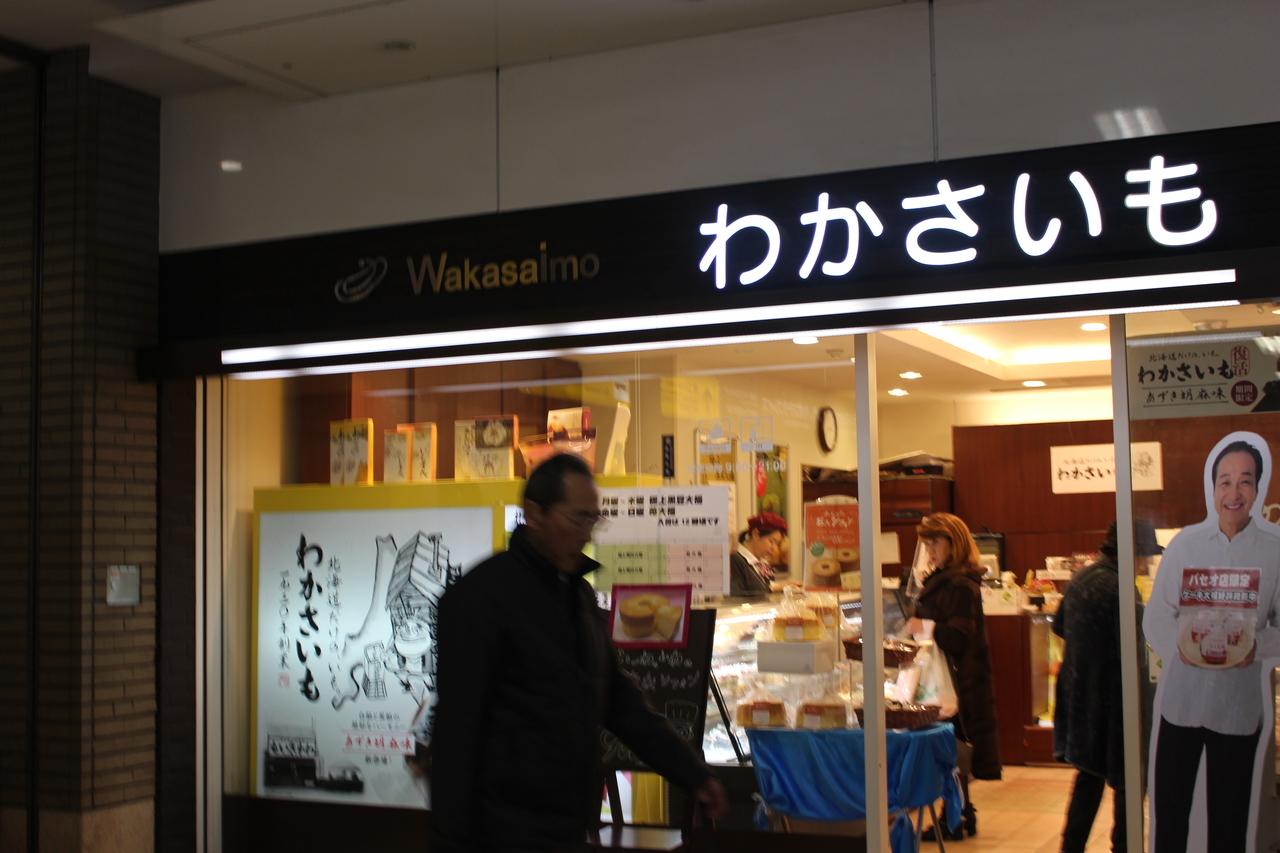 北海道の人気の観光スポット、札幌にあるショップです。札幌駅の構内にある和スイーツショップで洞爺湖で人気のお店です。さつまいものような形のおまんじゅうで中の白餡が上品な甘さとホクホク感があり、懐かしい味わいでおいしかったです