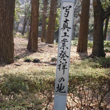 新宿中央公園の一角にあります。明治時代にここで写真感光材料の国産化の研究所と工場が建てられたということです。とはいえ当地にはそのような説明は一切なく、ただ「写真工業 発祥の地」という細長い棒が立っているだけです。