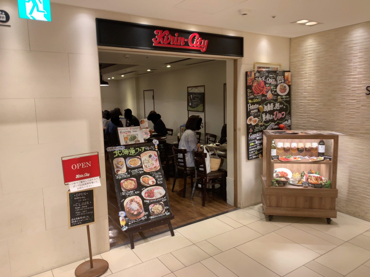 JR、相鉄、東急、横浜市営地下鉄横浜駅から数分の横浜モアーズの2Fにあります。お店の入り口にはレジ等はなく、奥まったカウンターへまずいくことになります。キリンシティはビールの肴が多く、メニューがそろっていて好き嫌いのある人でも安心です。