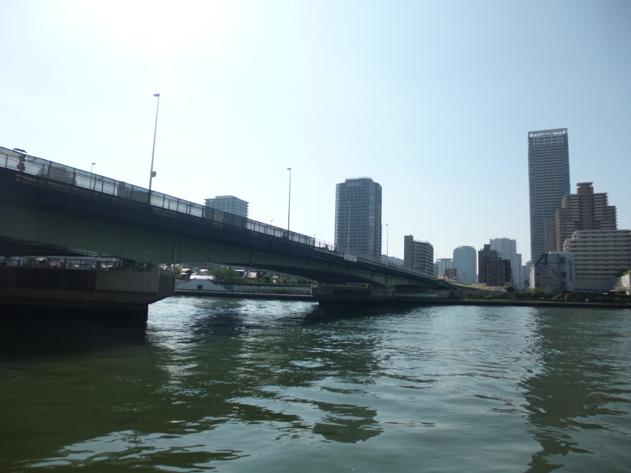隅田川に架かる橋のひとつで、中央区の湊と月島を結びます。隅田川の左岸沿いに設けられた緑道を通り、橋をくまなく眺めましたが、あまり趣を感じる橋ではありませんでした。交通量が多い橋のためか、美しさよりも剛健さの方が印象に残りました。