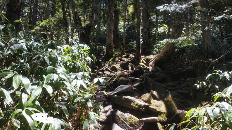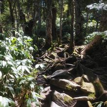 下山は菅平牧場へ。しばらくは視界の良いルート。牧場の登山口までは4.6キロあるようで根子岳よりは距離がある。傾斜はややきついところがあった。やがて樹林帯に入るが、牧場までは意外と距離を感じた。