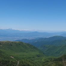 山頂はあまり広くはない岩場だが、アルプスや浅間山、妙義山など周辺の山々の眺望がすばらしい。
