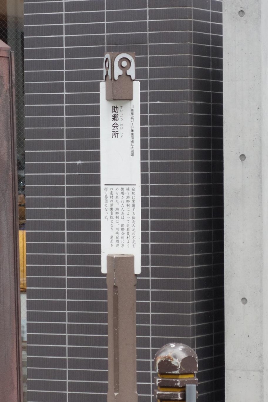 川崎あたりのエリアを散策中こちらの場所へ立ち寄りました。旧東海道の川崎宿に位置する助郷会所跡は現在では解説板が立つのみとなっていますが、かつて農民が人馬の労役を提供するため生活が困窮していたことを知りました。