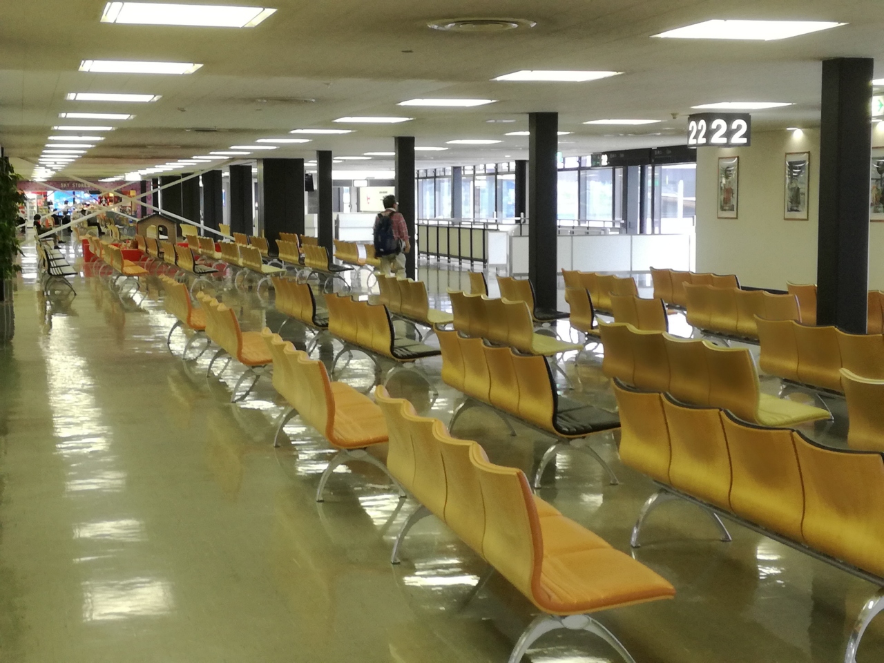 ターミナルビルは改装されきれいになったが、天井は低いままで関空に比べ圧迫感があります。