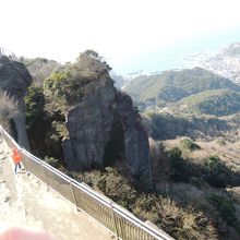 地獄のぞきで有名な鋸山展望台です。車やロープウェイで地獄のぞきの近くまで行けますが、ハイキングで日本寺の入り口あたりから登ることもできます。もともとが石切山であった場所なので、石を切り出した後の岩が宙に突き出す形で残されていて、そこが現在の地獄のぞきの場所となりました。観光客が行列を作って覗いています。