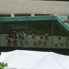鯉が釣れます。水は濁っていますが、鯉はこういう水質を好むので、これでいいのかな。都会の真ん中の釣り堀は、のどかでした。