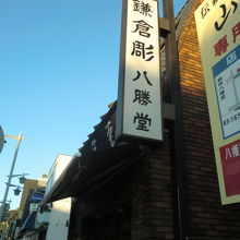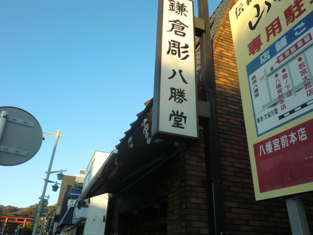 鎌倉の若宮通り沿いにある鎌倉彫の店で、通りの右側にお店があります。
