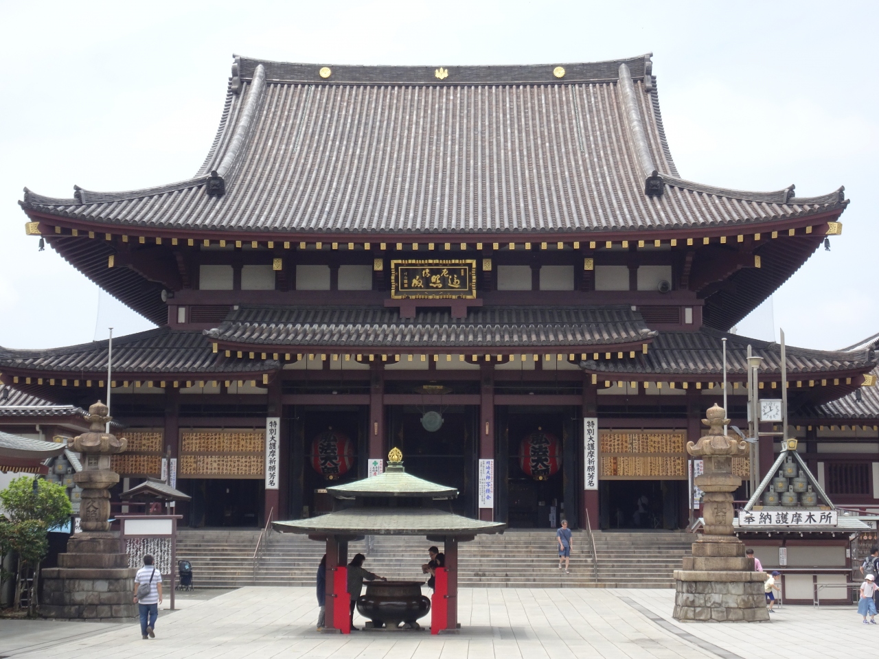 京急川崎大師駅を出てすぐ左側の厄除門をくぐり、さらに仲見世の賑やかなお土産通りを進めば、川崎大師(平間寺)の大山門に到着です。