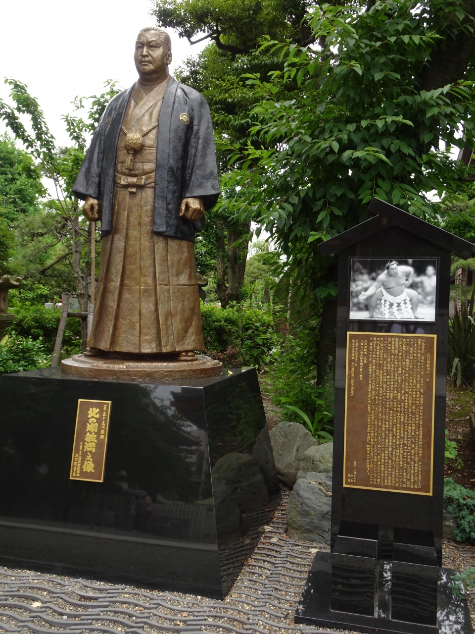 境内には本堂の他、五重塔、その裏には 生前信仰が篤かった故・北の湖親方の銅像が現役時代の写真とともにありました。