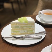 ショーケースに並ぶ色とりどりのケーキはテイクアウトもできる。カフェスペースは広め。