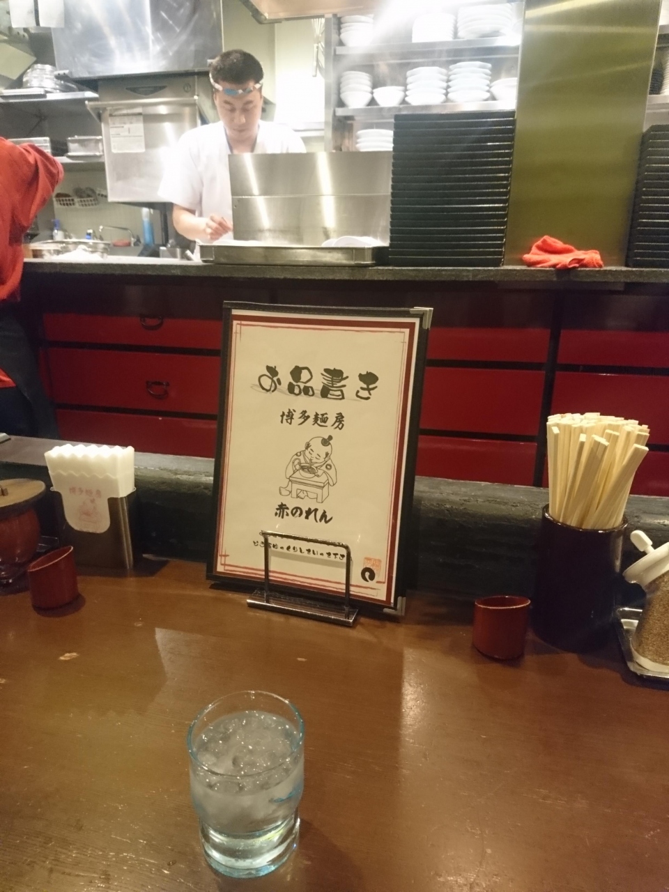 西麻布は公共交通で行くには不便な場所だが、この赤のれんの博多らーめんはうまい。昔は昼も営業していたが、今は夜だけになった。その点ではこの丸の内ビルのレストラン街に支店ができて、ほぼ同じ味がランチでも楽しめるのは良い。ただし夕方からこの店だけで提供の焼き餃子は勧められない。西麻布と同じ水餃子にするべきだった。