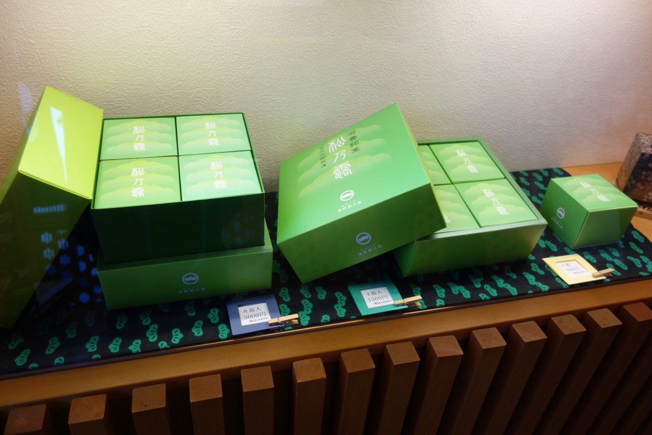 松乃露の箱入りギフトのみ飾ってあり、注文すると奥から用意してくれます。