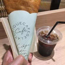 日曜日の買い物途中にアイスコーヒーとクレープを食べて休憩しました。クレープには焼き上がりにエシレバターを塗ってくれるのでバターの風味がとても美味しいです。アイスコーヒーも注文してから1杯づつ入れてくれます。