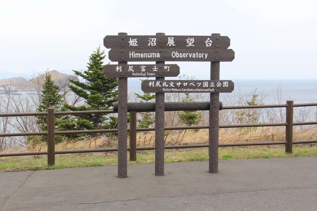 鴛泊港から車を走らせて時計回りに3 km ちょっと山に少し上がったところにある展望台ですこの展望台からは鴛泊港が見えます左の奥の方に見える陸地は礼文島ですそして右手の方に見える陸地は北海道の稚内方面の陸地です。ここにはトイレや自動販売機や売店などは何もありません。