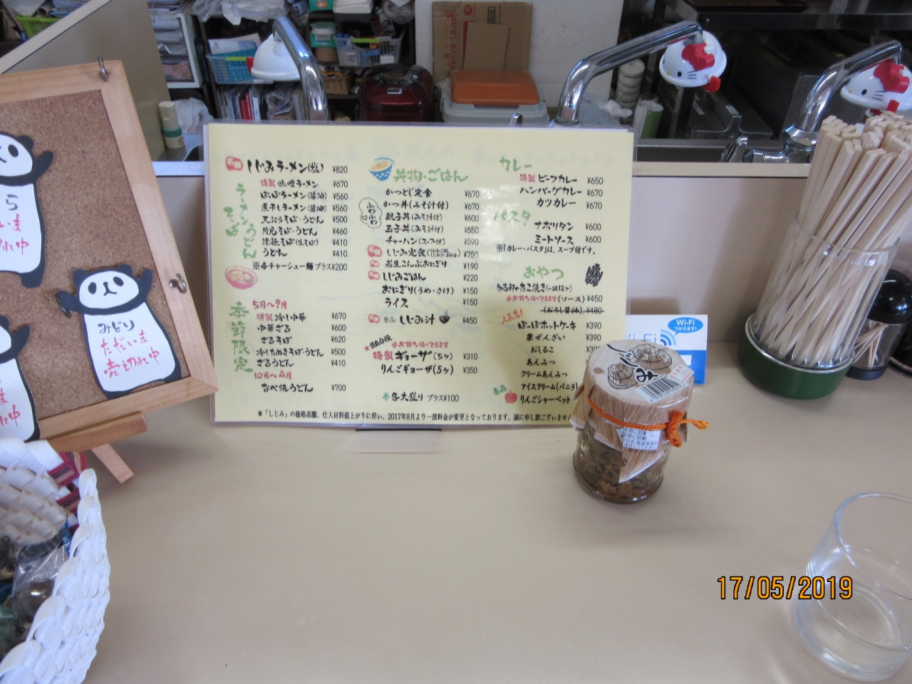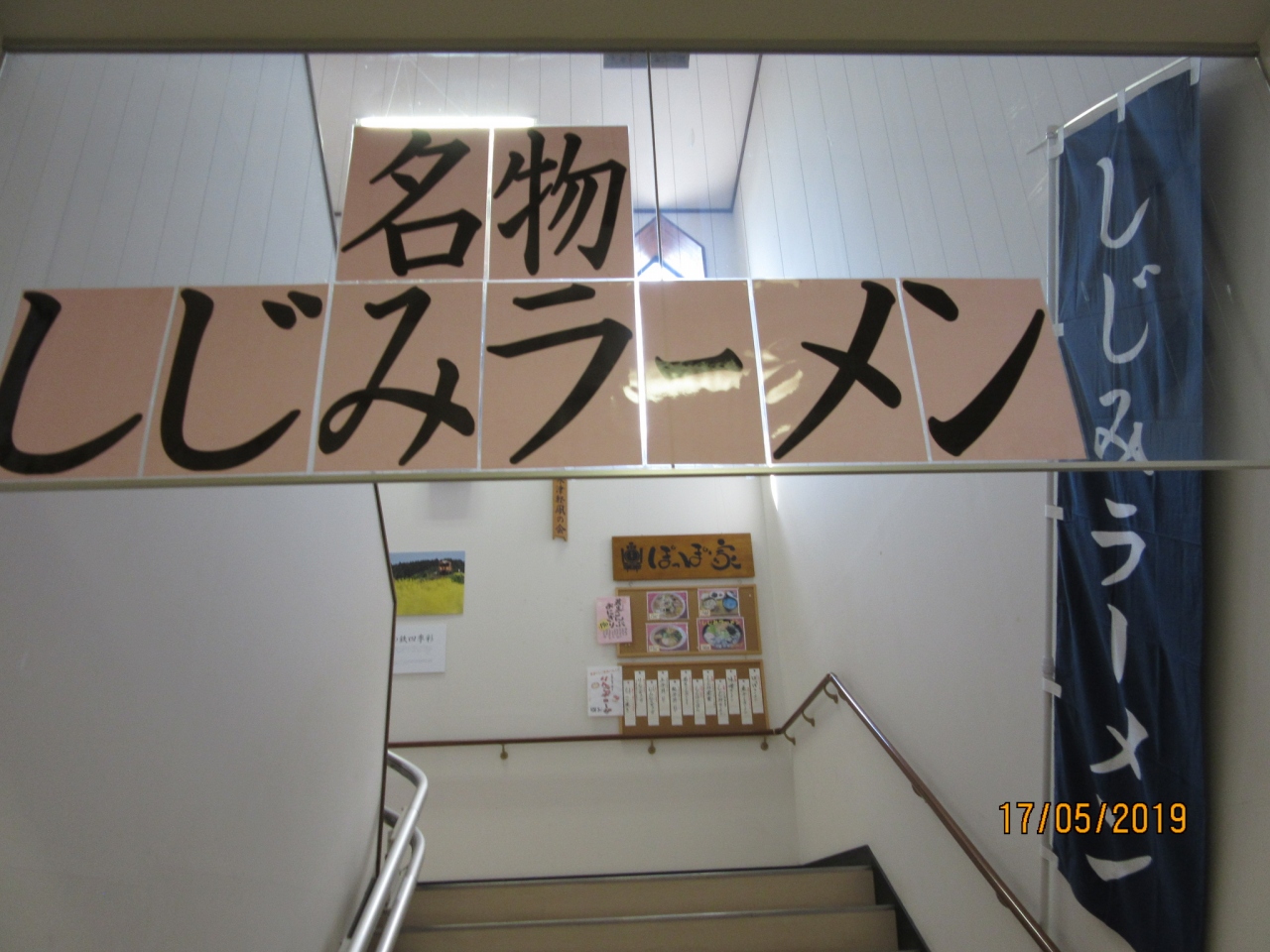 五所川原の金木駅で下車して【斜陽館】と【津軽三味線会館】を見学してその帰りに列車の時間待ちに利用。駅の2階にあるので好都合であった。本来はここで40分くらい余裕を持ち、看板のシジミラーメンを食べたかったが、観光に時間がかかって【わかめこんぶおにぎり190円】と【しじみご飯220円】をテークアウトし、ホテルで食べた。また売店が併設されていたので、シジミの瓶詰540円も購入。ご飯類はほどよく美味しかった。