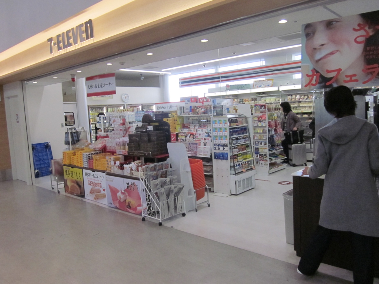 到着ロビーをでて目の前にあるセブンイレブンです。目の前にベンチがあるので、セブンイレブンでパン、おにぎりを購入して食べている方も多かったです。