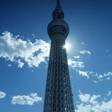スカイツリーは何処からでも眺める事が出来ますが、桜橋通りを横切る東武鉄道の踏切から見るスカイツリーもスペーシアとのコラボレーションがなかなか良く、東京ソラマチの展望室から眺めるスカイツリーは迫力充分です。