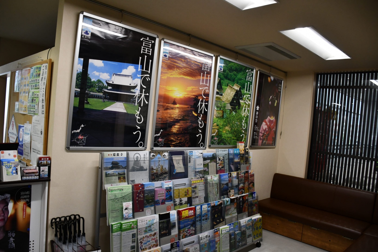 高岡駅改札口を出ると、すぐに目に入ります。駅は五年前に改装されたそうで、線路は地上に敷かれたままで昔のような風景ですが、駅舎はすっかり現代化されています。高岡市内だけでなく、富山県一帯の資料なども揃っています。