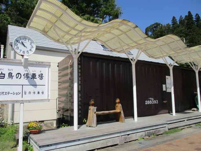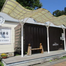 宮沢賢治記念館から遊歩道を回りイーハトーブ館を見てからバス停に戻り道を渡ったところにあります。