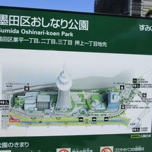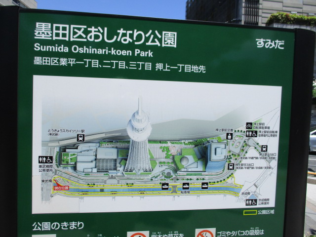 東京メトロ半蔵門線押上駅から歩いて2分ぐらいでおしなり公園に着きます。おしなり公園は東京スカイツリータウンの目の前にある北十間川沿いのテラスで芝生が広がり遊歩道やスロープ、船着場などがあり散策や休憩を楽しめます。下町探検クルーズは河川から色んな角度の東京スカイツリーを眺められ見ごたえありますので足を延ばして訪れることをお勧めします。