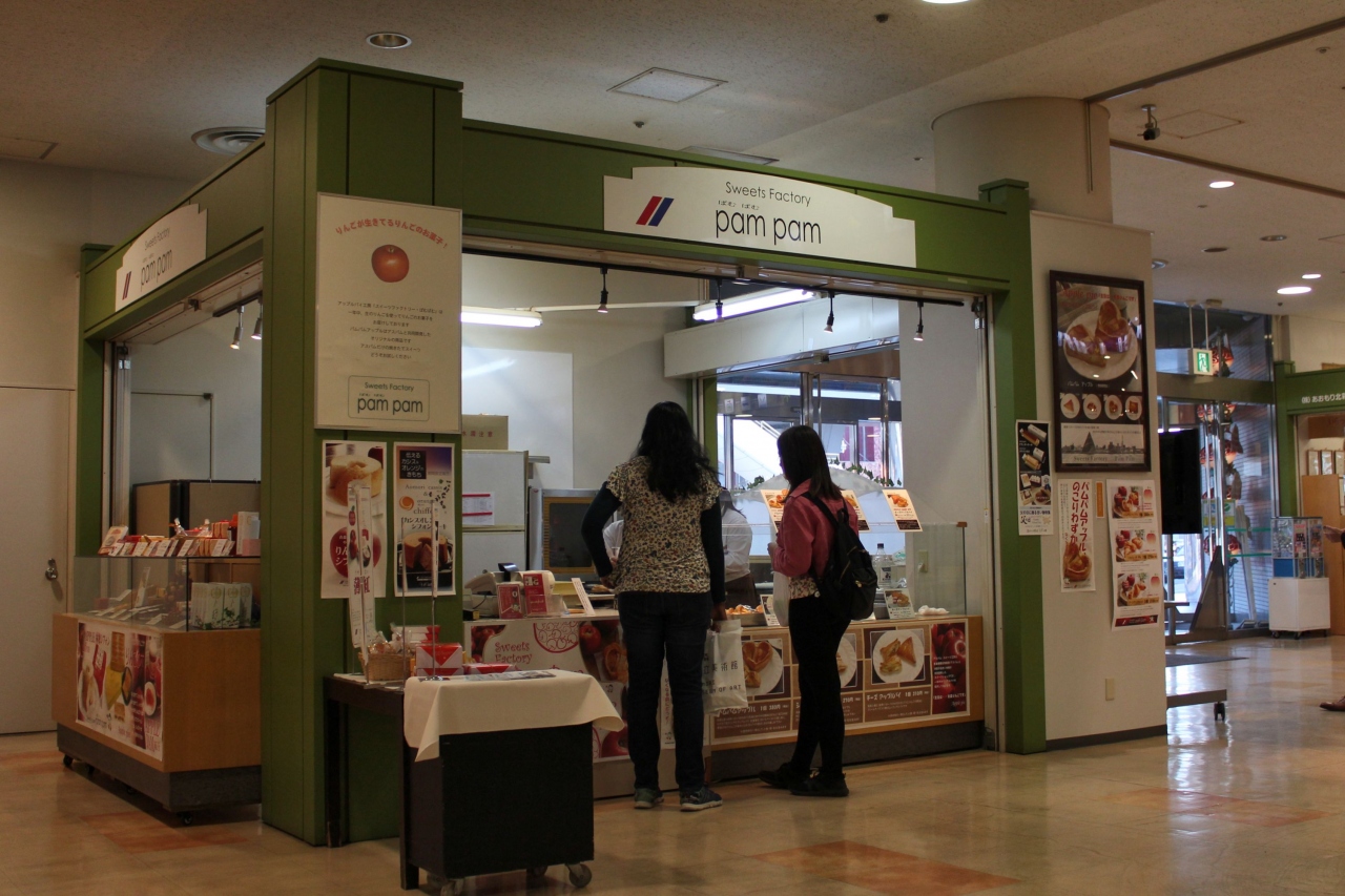 入り口の脇にあるアップルパイのお店は温かい物が食べられて手軽でおいしいです。