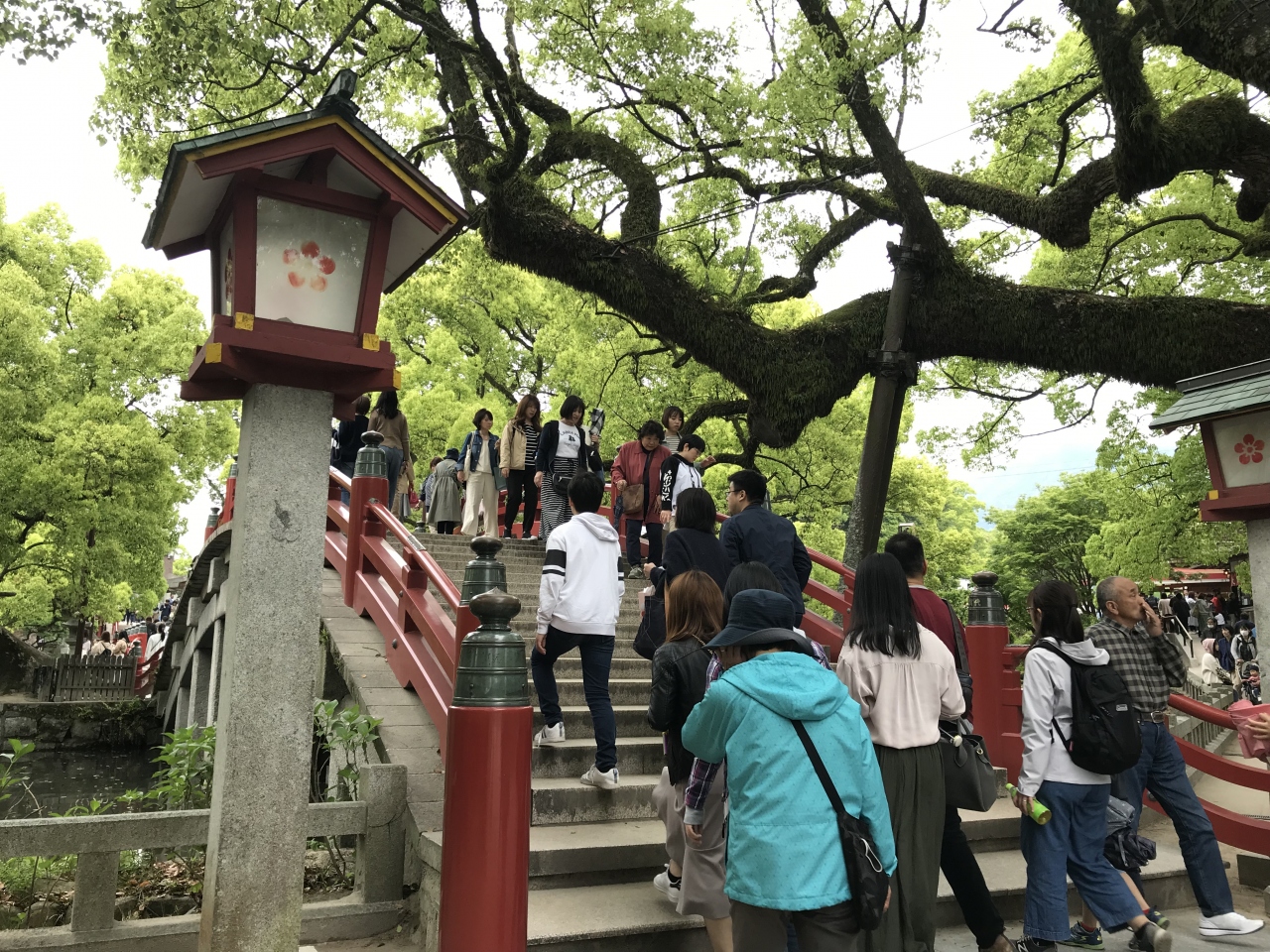 太鼓橋、平橋、太太鼓橋の3つの太鼓橋を渡りました。過去、現在、未来を表した橋だそうで、この橋を歩くことで心身が清められるとのこと。そんな御由緒があるとは知らず、3つも太鼓橋が並んでいたので、楽しく橋を渡りました。橋の途中にある心字池も太く立派な木々に囲まれていて清々しいです。なかなか起伏が激しいけど、歩くだけで楽しい気分になります。