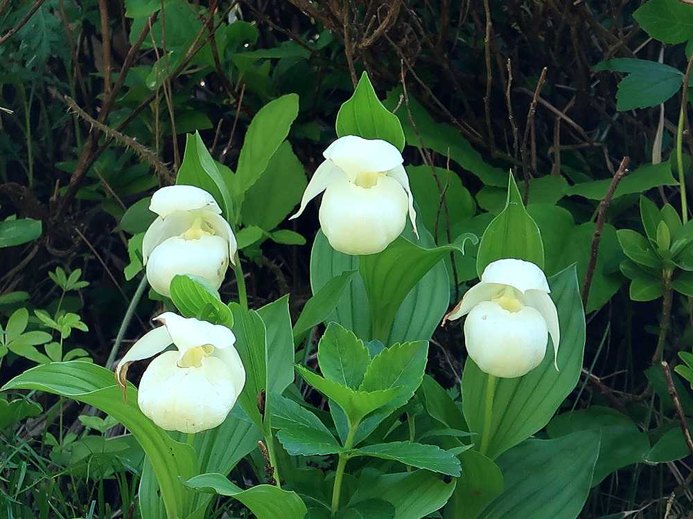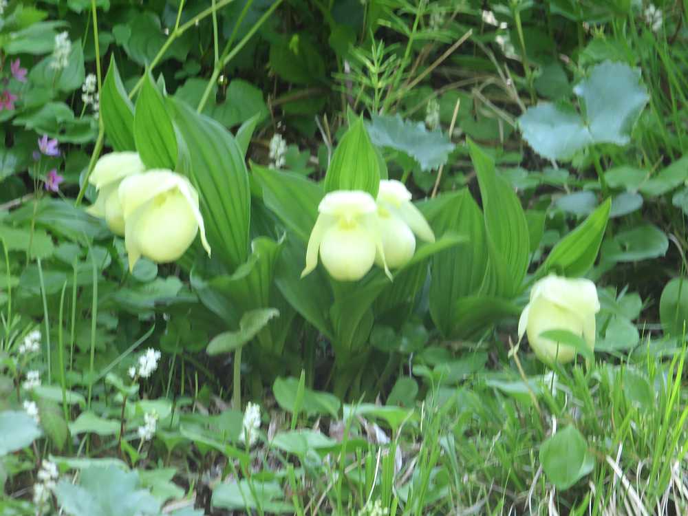 今年(2019年)の5月下旬、北海道が異常なほど暑かったので、開花がおそらくかなり早まると予想し、当初の予定を5日早め、6月3日に礼文島に着いて、真っ先に訪れました。おかげで一部は褐色に変色があったものの、なんとかきれいな状態のかわいい花を見ることができました。旅行後に礼文花情報館というサイトで開花状況を知ることができることを知りました。訪れる前にチェックされるといいと思います。群生地は互いに少し離れた2カ所にあり、その他に赤いアツモリソウを浜中バス停の近くのバス通り沿いで見ることができました。