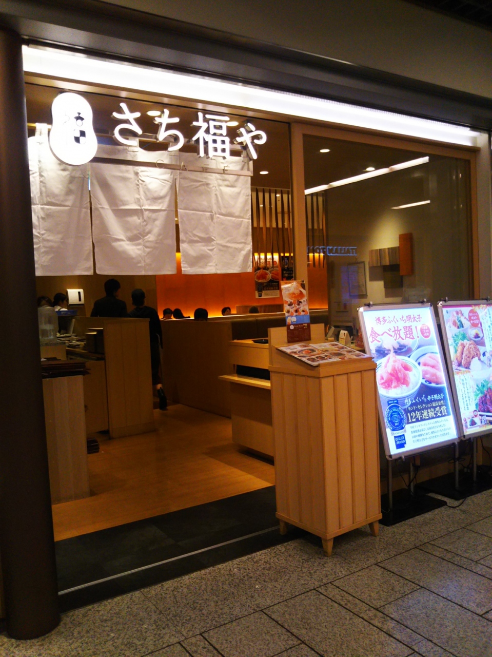 川崎駅の地下街、アゼリアにあるレストランです。和食中心の定食メニューがありました。厚切りのとんてきは特製タレが香ばしくてやわらかくておいしかったです。しかもふくいちの明太子が食べ放題です。粒がしっかりしていて辛くておいしかったです。