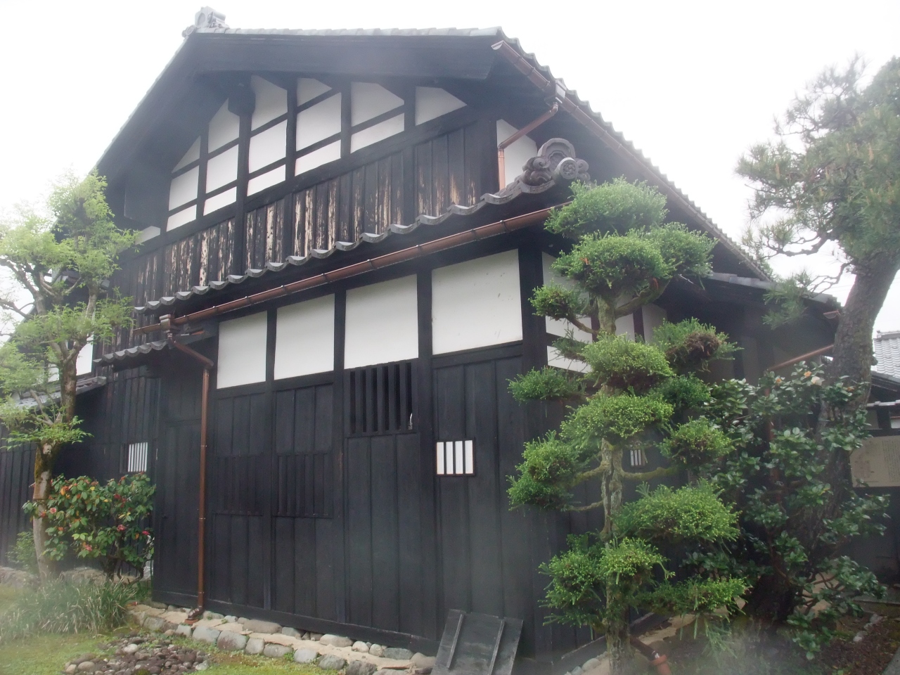 大正期に建てられた内山家の離れからは、大野城を一望することが出来ます。門の脇には、味噌蔵、米蔵、衣装蔵があ利ますが、軒先を支えているのは、頬杖と呼ばれるこの地方独特の造りだそうです。