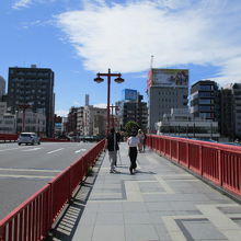 東京メトロ銀座線浅草駅から交差点を渡り東京都観光汽船の先にある吾妻橋に歩いて2分ぐらいで着きます。吾妻橋は隅田川に架かる朱色の橋で東京都観光汽船の水上バス乗り場、隅田公園があり、東京スカイツリーとアサヒビール本社モニュメントを一緒に写真を撮ることができ多くの観光客のフォトスポットになっていまのでシャッターポイントとしてお勧めします。着物着たアジア系観光客が多く東京スカイツリーをバックに自撮りして賑わってました。墨田川に架かる橋で赤い橋脚が見ごたえあります。川を行き交う観光汽船も景色にインパクトを与えてくれます。