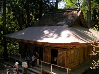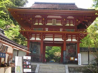 近鉄線の室生口大野駅から室生寺行きのバスに乗って15分ほどで室生寺前に着いて、参道を進むと土産物屋が並んでいて、朱塗りの太鼓橋の横に女人高野室生寺の石碑があります。太鼓橋を渡って川沿いに進み受付で拝観料を払って進むと仁王門があり、鎧坂を上ると柿葺の弥勒堂があり、鎌倉時代の建物で重要文化財に指定されていて弥勒像が安置されています。