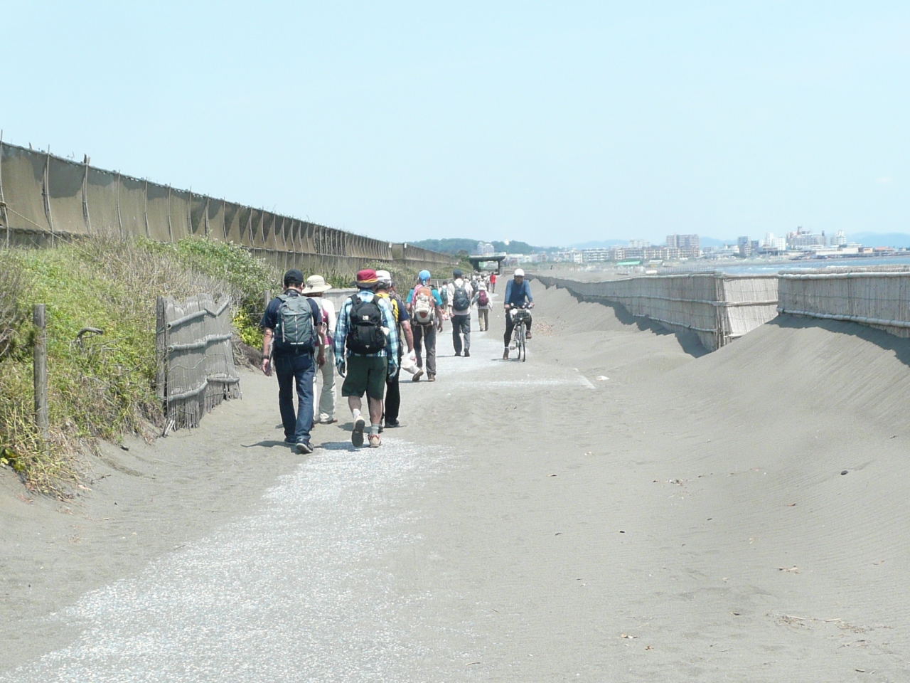 アスファルトで舗装された遊歩道は直線状に伸びていましたが、相模湾の潮風に爽快感を覚えました。