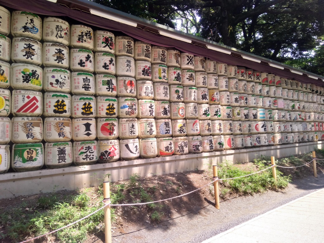 神宮橋から明治神宮の内苑に入りました。内参道は奥多摩にでも来たのではないと思ってしまうほどうっそうとした緑に囲まれていて都会の喧騒を忘れさせてくれました。そして、ブルゴーニュの醸造元から奉納された葡萄酒樽や、日本中の酒樽があったりして面白かったです。