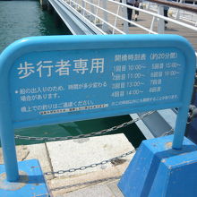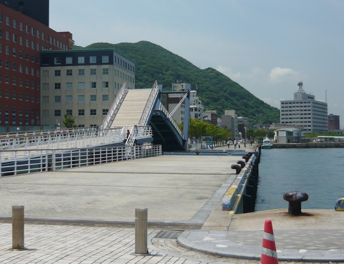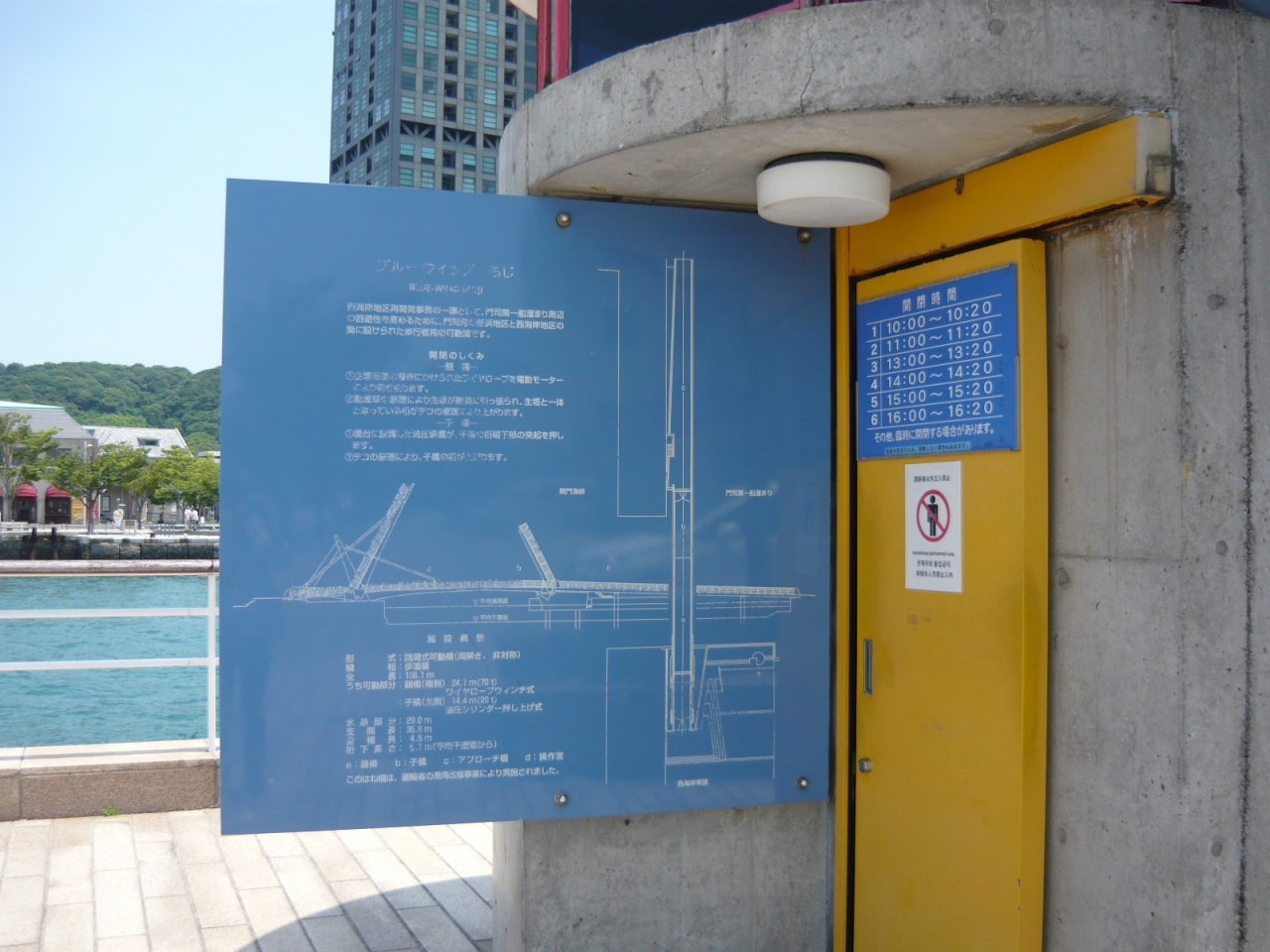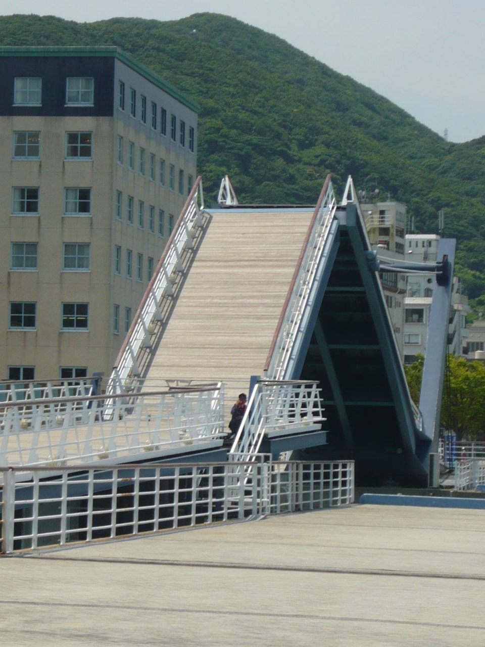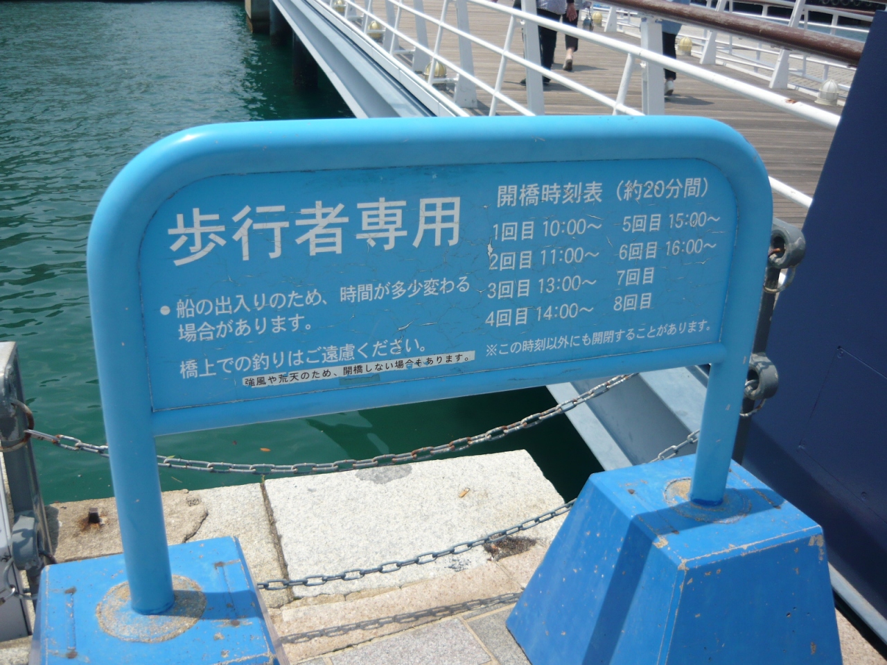 門司港レトロ地区にある歩行者専用の跳ね橋です。全長は108m、料金は無料でわたることができます。跳ね橋なので、開いていない状態で見ても面白みはありません。毎日午前10時から午後4時まで、毎時00分毎(6回/日)に橋が開閉されるので、開閉時間にあわせて行くと良いです。