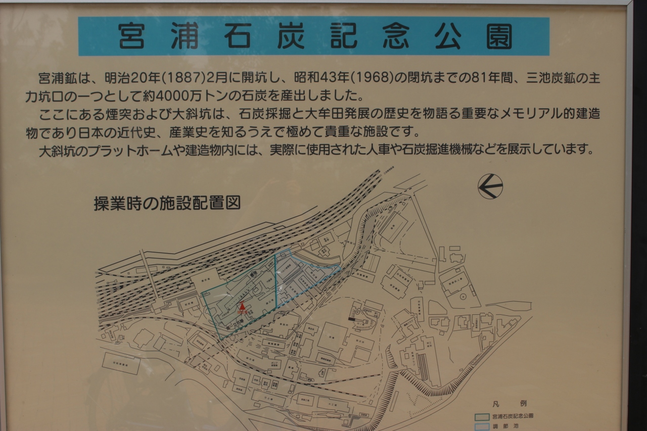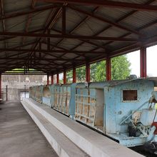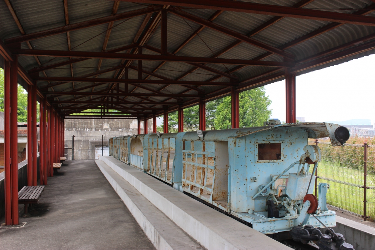 無料の公園で、大きな煙突と、かつて炭鉱で働く人たちが、炭鉱に入っていくときに利用されたトロッコが展示されていました。