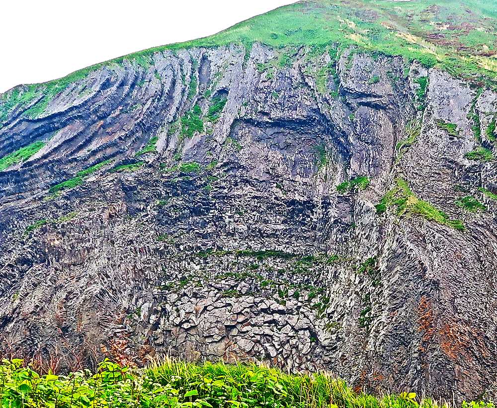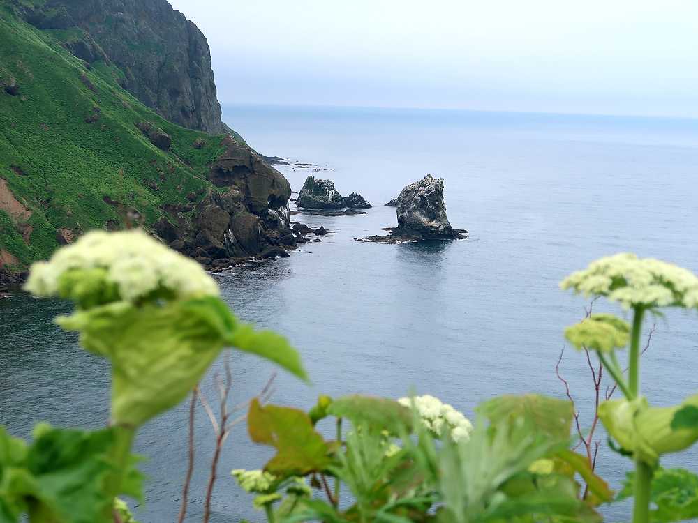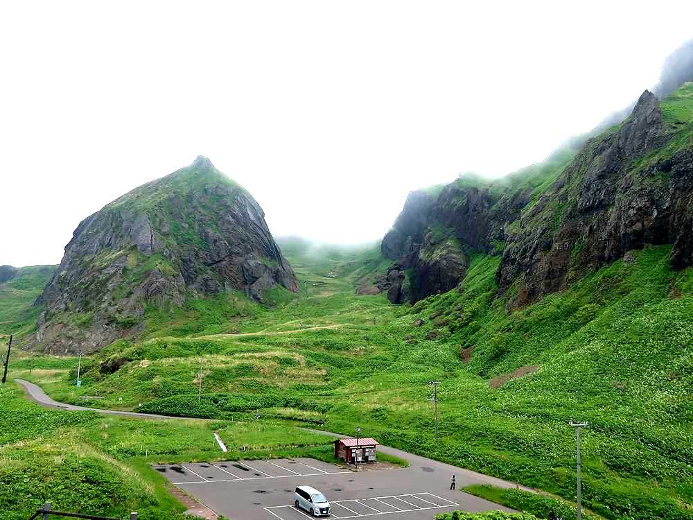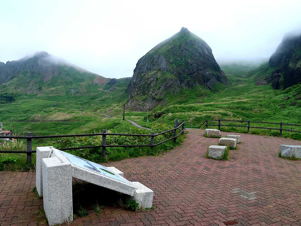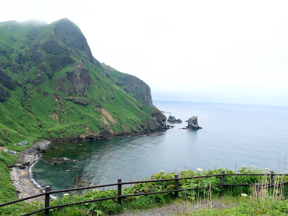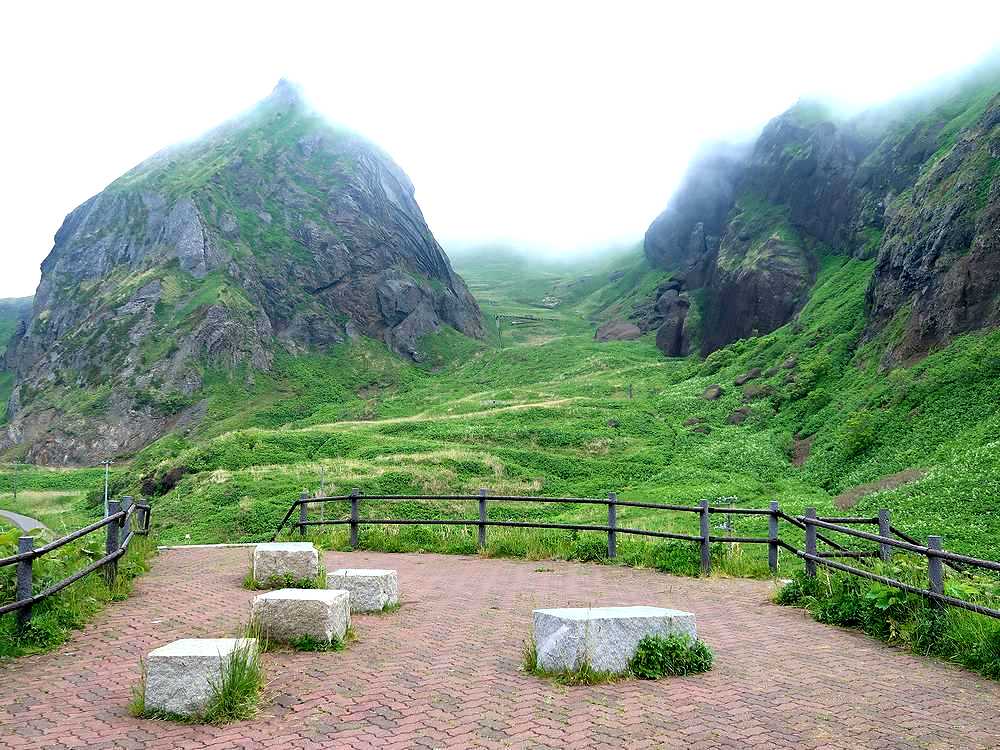 この展望台からのほうが、桃岩がより桃に、猫岩がより猫に見えるということで桃岩展望台コースから続いて歩いて行きたいと思っていたら、旧トンネルが閉鎖され、その日は行くのをあきらめ、翌日宿の車で新トンネルを通って送っていただきました。そこから地蔵岩のある元地まで歩き、11時22分発のバスで香深へもどりました。個人で来る場合は、香深フェリーターミナルから元地行きのバス(一日5便、7:05,9:00,11:10,15:33,17:20発)に乗り、元地で下車。そこから徒歩10分で展望台に来ることができます。唯一13:15発の元地行きの観光シャトルバスだけがこの展望台を経由してくれます。元地から同じバスが10分後に戻ってくるので、短い時間ですが、時間のロスなく見学できます。写真を撮るだけなら10分で十分だと思いますが、せっかくなので、ゆっくり見学し、元地まで歩き、メノウ海岸と地蔵岩を見て、元地発の15:33のバスでフェリーターミナルに戻るといいと思います。それでも時間をもてあますかもしれません。