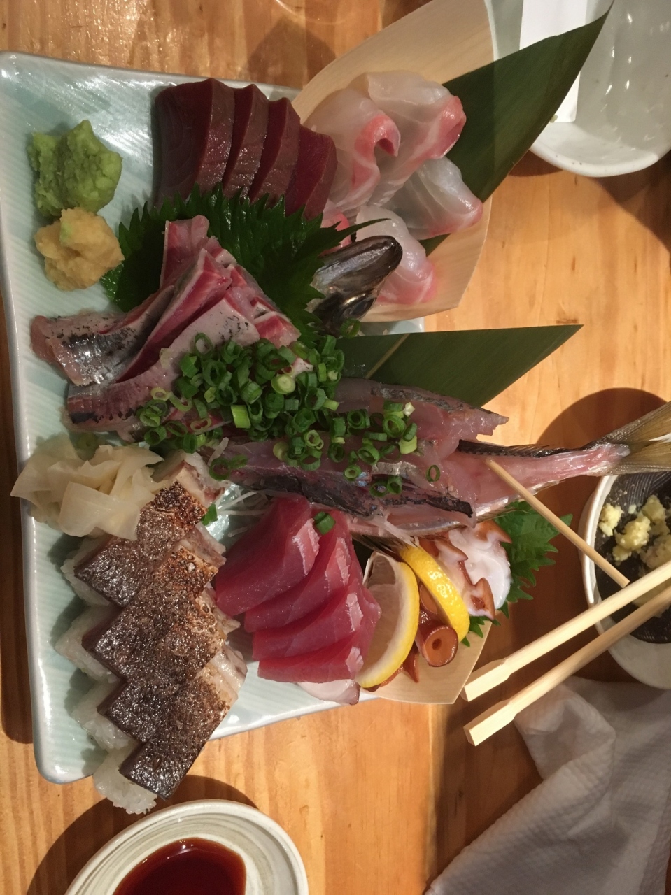 お手頃刺し身三点盛りをオーダーしましたが、出てきたのは豪華6点盛り