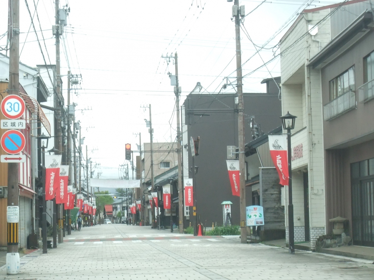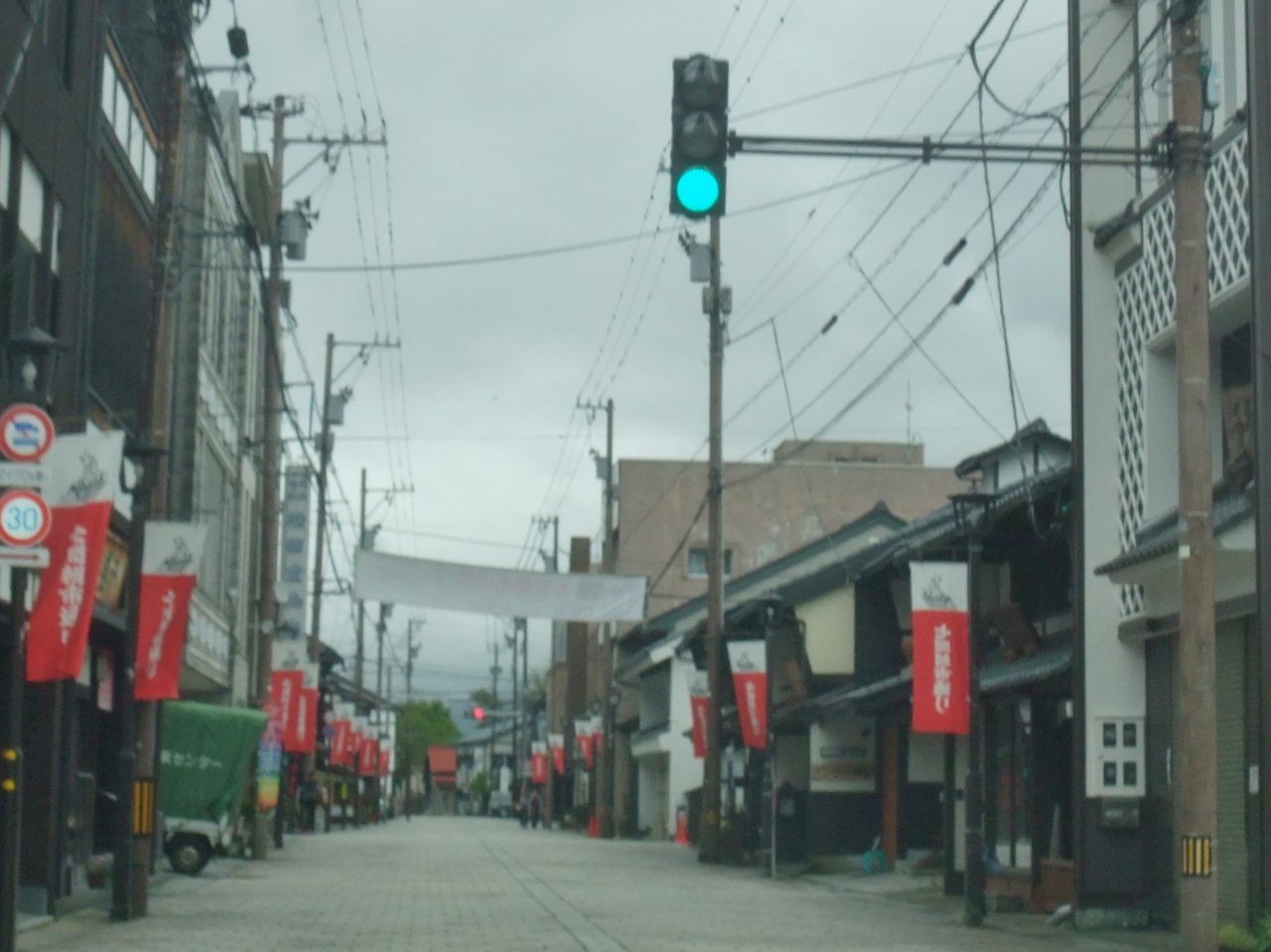 今回私たちは、訪れた時間が遅く、残念ながら朝市はもう終わっていました。そこで、赤い旗の閃く七間通りを、車で通り抜けるだけになってしまいました。