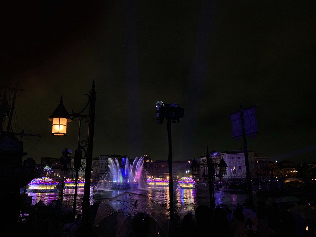 光と花火がとてもきれいな夜のショーです。週末は夜8時から始まりました。ミッキー広場で見るのが1番オススメですが、どこからでも楽しめるショーだと思います。ファンタズミックが終わってから10分後位には花火もあるので、その場で一緒に見ることができました。