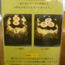 海峡プラザ西館の2階にお店があります。5人で入店し名物だという“瓦そば”を注文したら、熱くした瓦の上に2人盛りと3人盛りの茶そばが配膳されました。茶そばの上には錦糸卵や牛肉、海苔、ネギ、レモン、モミジおろしなどの具がのっていて、具と一緒に温かいそばつゆにつけて食べるものです。瓦でパリパリに焼けた茶そばは濃い目のつゆと相まって美味しかったです。ただし、焼いてしまうのでそばの香りも、のど越しも無いので、通常の日本蕎麦とは全く別物と考えて食べた方がいいです。
