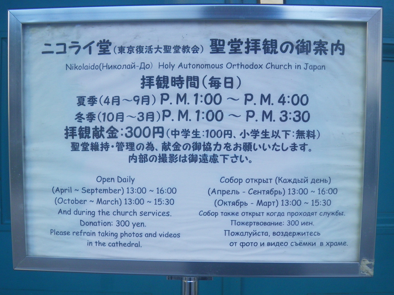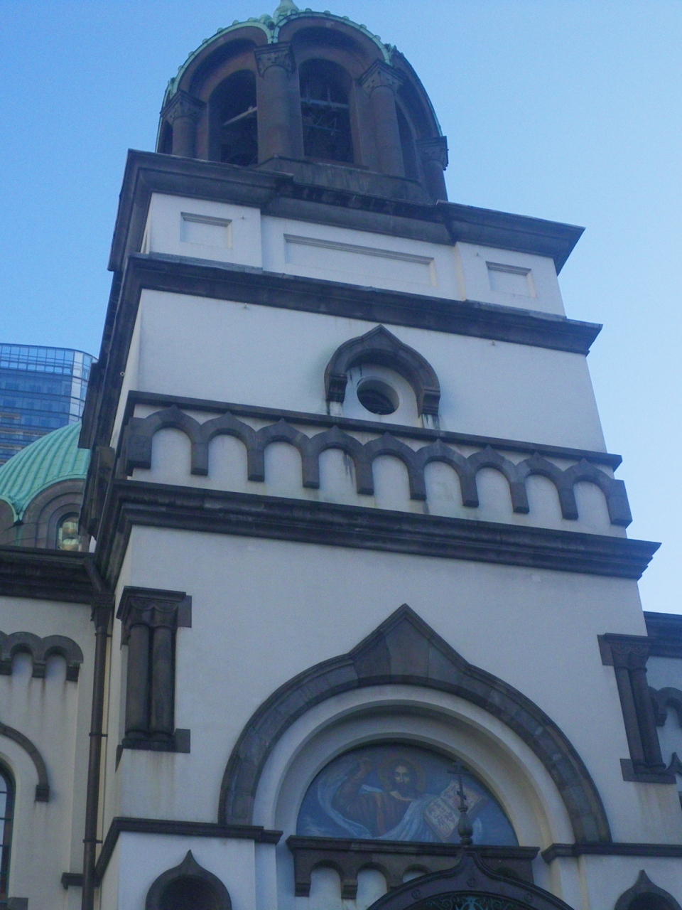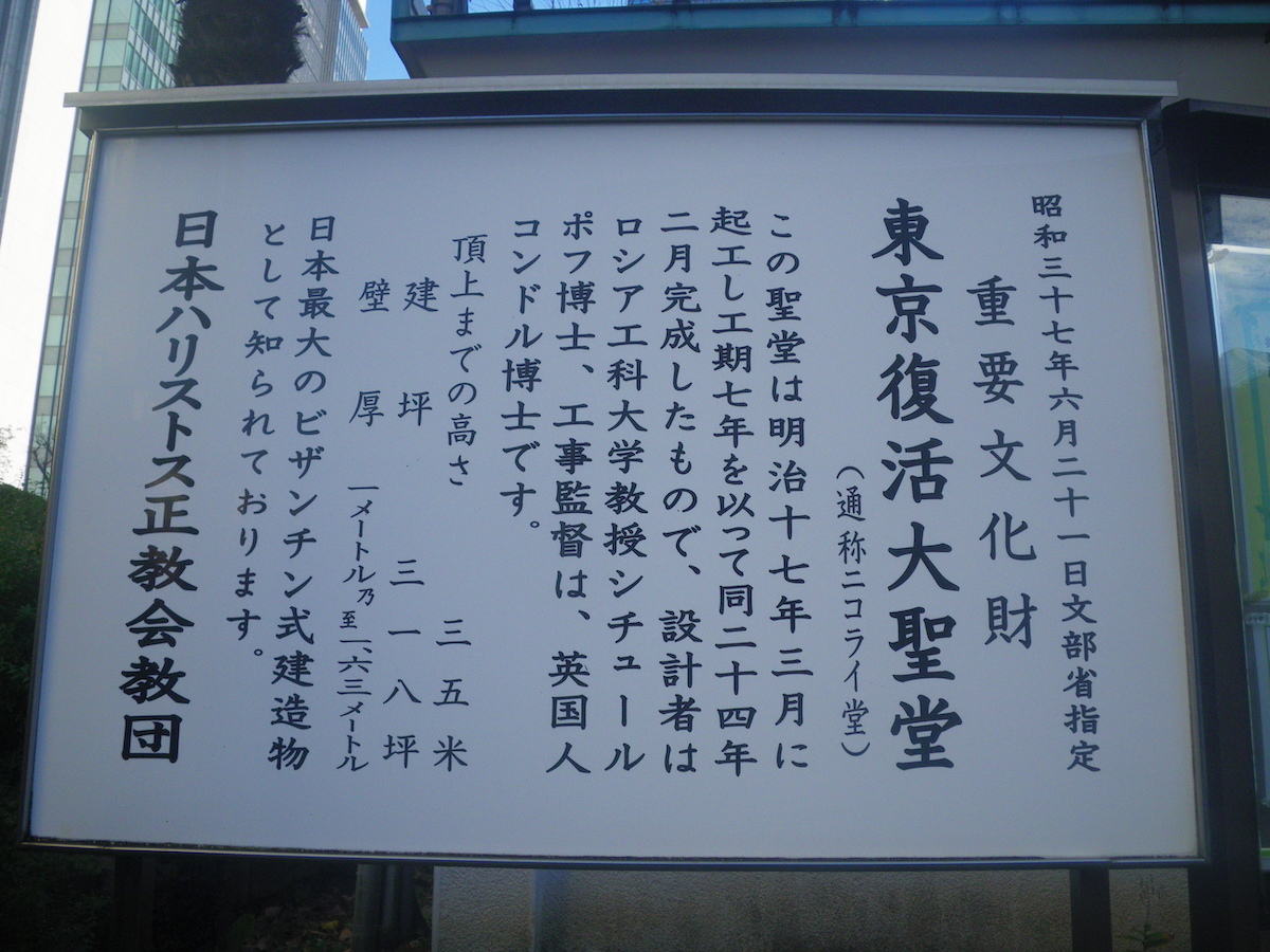 ニコライ堂、またの名を「東京復活聖堂」です。JR御茶ノ水駅の南側に位置しており、坂を降りる前にありました。現代的な高層オフィスビルに囲まれた中で、この歴史的な建物は非常によく目立ちました。オフィス街に響き渡る鐘の音もなかなか趣がありました。聖堂の中を拝観することもできるそうなので、今度行く機会があったら中に入ってみたいと思いました。