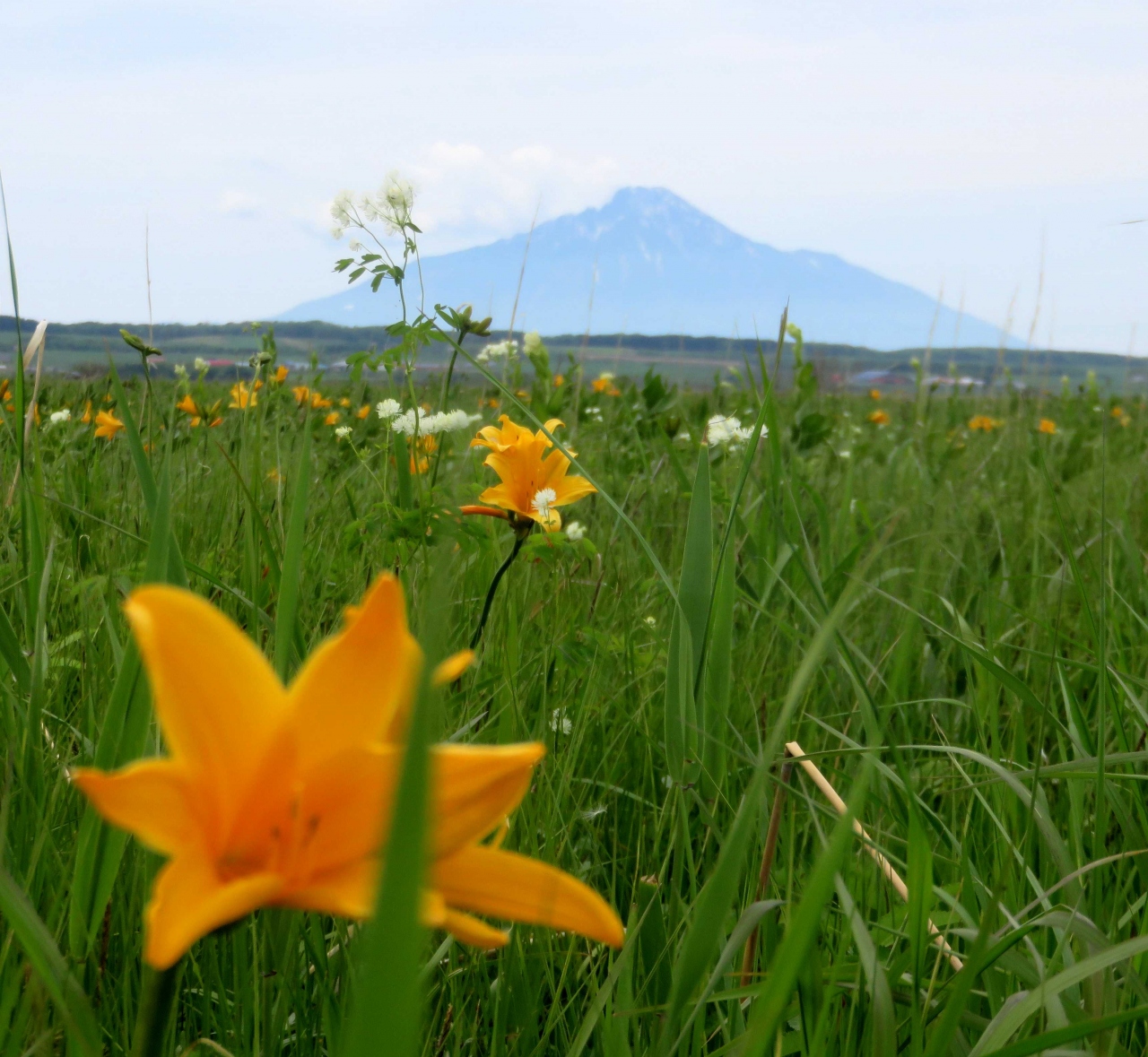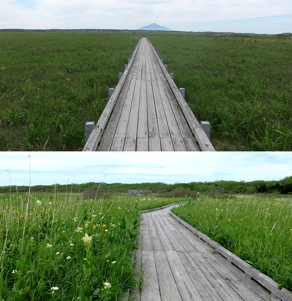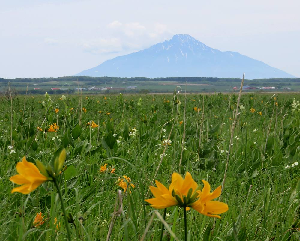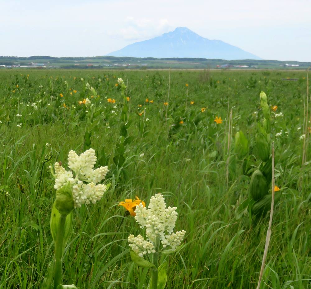 6月初めに稚内でレンタカーを借りて訪れました。利尻島や礼文島でもすでにエゾカンゾウの花が咲いていたので、もしかしたらここでも見れるかも知れないと一縷の望みを抱いて向かいました。途中のオロロンラインの道路脇のエゾカンゾウは見ごろを迎えつつあったので、ますます期待が膨らみました。稚内から1時間半弱かかって入園。実際は日当たりがいいところはきれいに咲き始めていましたが、最盛期にはあと10日から2週間かかりそうでした。今年は例年よりは開花が早かったようです。それでも利尻山が遠望でき、いいところでした。この時期はカラマツソウとコバイケイソウがきれいに咲いていいました。
