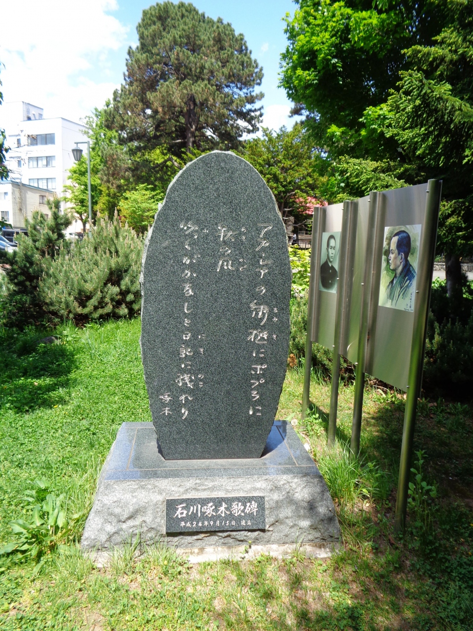 何故この場所にあるのかは、よく分かりませんが、むしろ公園の雰囲気とは不釣り合いな感じで存在する歌碑のような気もします。というのも、碑だけならいいんですが、後ろに近代的な説明文があったりして、ちょっと浮いてる感じでした。