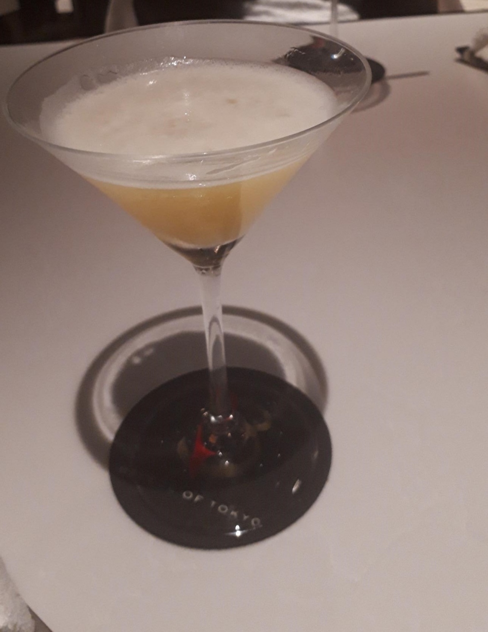 ノンアルコールカクテルの種類は三種類、アルコールタイプのカクテルはそれなりに種類があり、「季節のフルーツを使ったカクテル」を選択するとフローズンタイプのカクテルがきました。