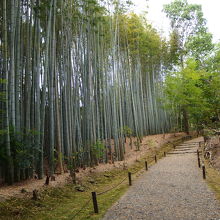 まわりは閑静な住宅地の中にある地蔵院の竹林です。竹ばかりということはなく奥にはもみじもあり、秋には紅葉もきれいそうです。何台か分の駐車場もありましたが、松虫寺周辺の駐車場において、坂をあがってくるのも風情があっていかもしれません。