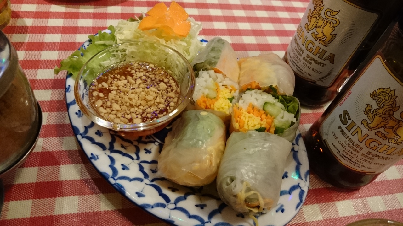 お料理の値段が手ごろで生春巻きやバッタイなどあれこれ食べビールを飲んでタイにいる気分を味わいました。