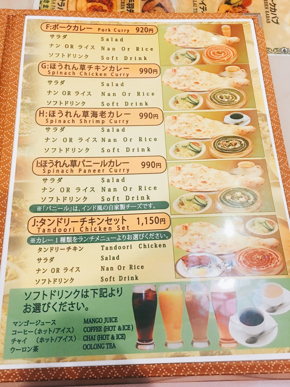 まずサラダにマンゴージュース、そしてカレーとナン登場。サラダは普通。カレーは明らかにほうれん草の色ではない。同僚もほうれん草カレーを選んでおりそちらは鮮やかな緑色だったがこれは茶色。どう見てもサグカリーには見えないなと思いつつ食べ進むとその辛さがじわりじわりと伝わって来る。
