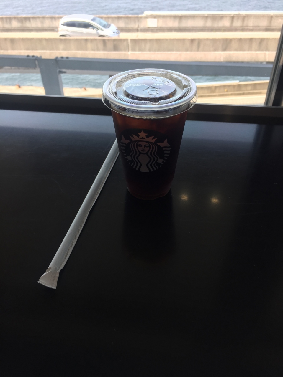 飲んだのはアイスコーヒーショート313円!海を眺めながらのんびりできました。