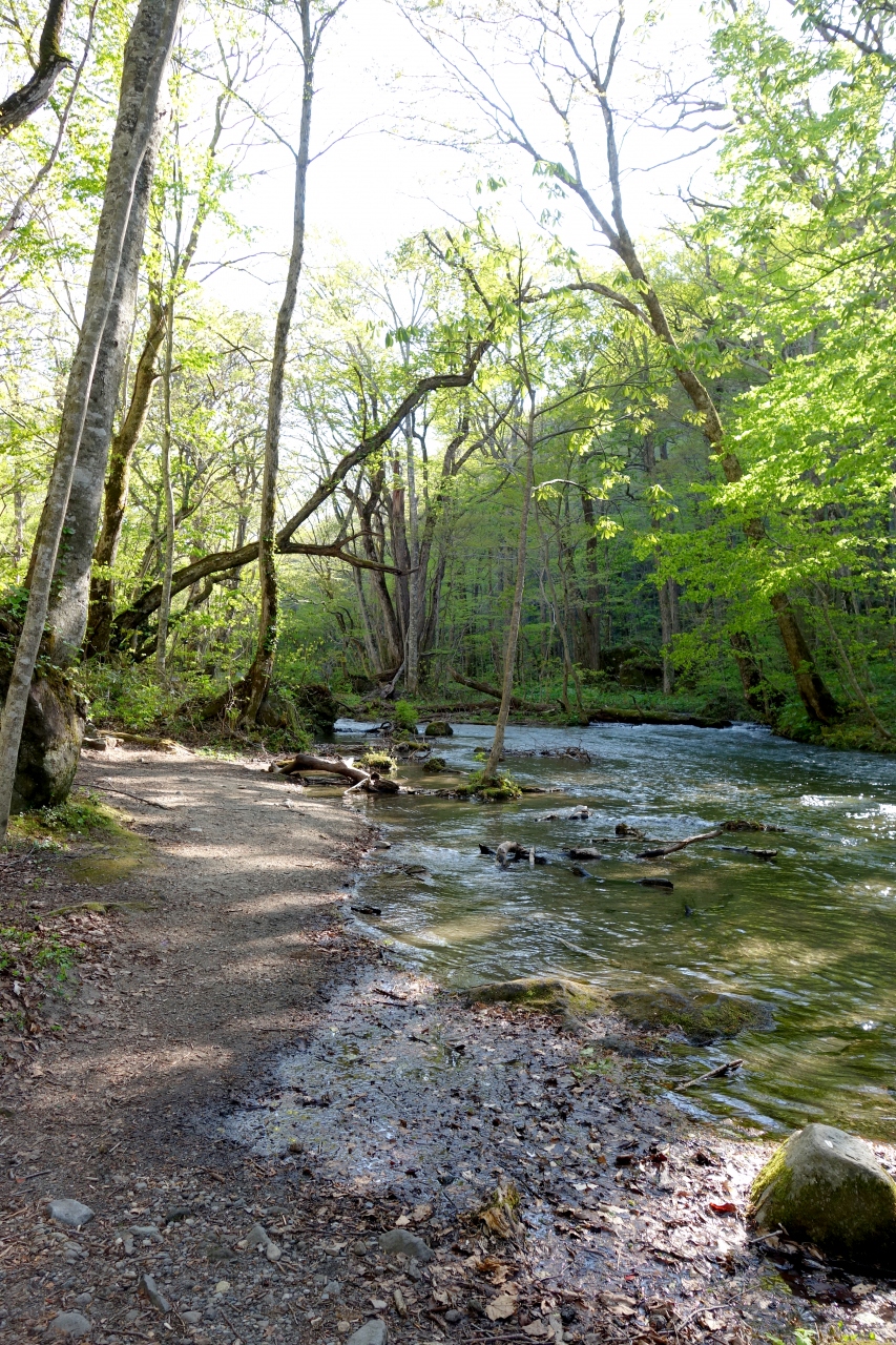 全長14km、全部歩くと4~5時間って聞いてたので、歩くのがキライな私には縁がない場所だと諦めていました。だけど奥入瀬川ってほぼ国道102号線沿いに流れてるんですね。