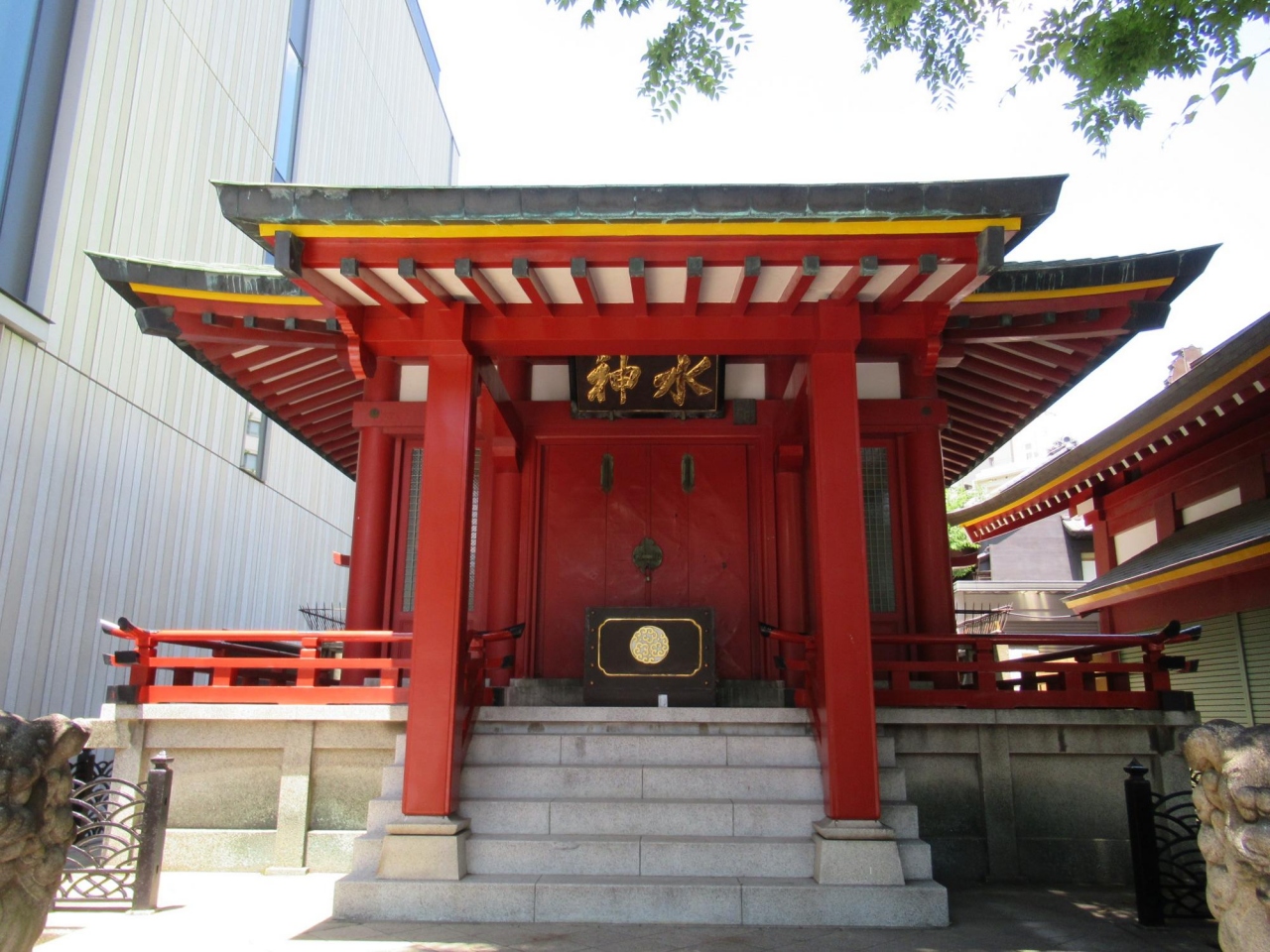 - 神田明神御社殿の左手前にある文化交流館の奥に並ぶ境内社四社の内の一社目なのでJR御茶ノ水駅聖橋口からほぼ北東方向に歩いて5分位です